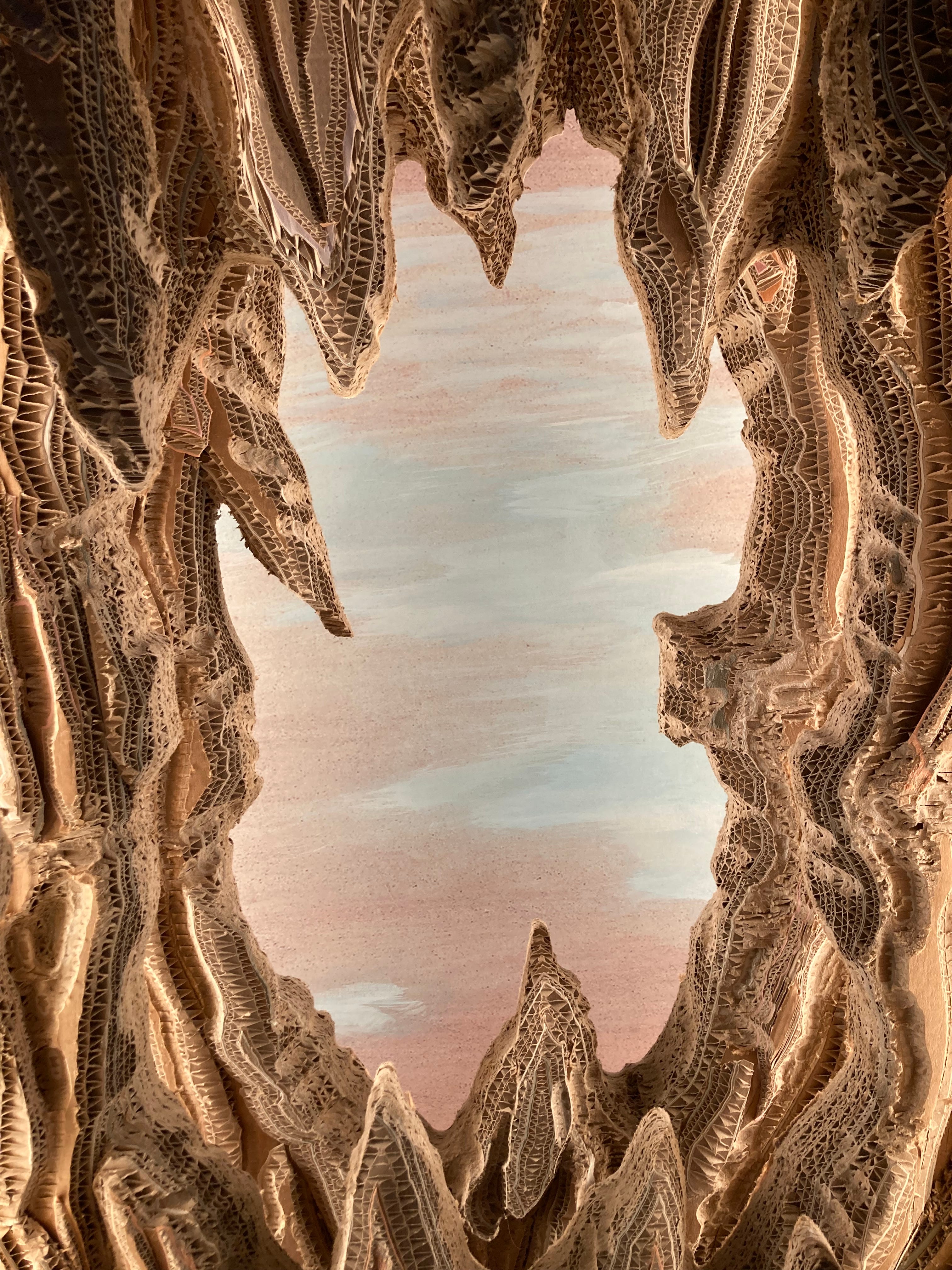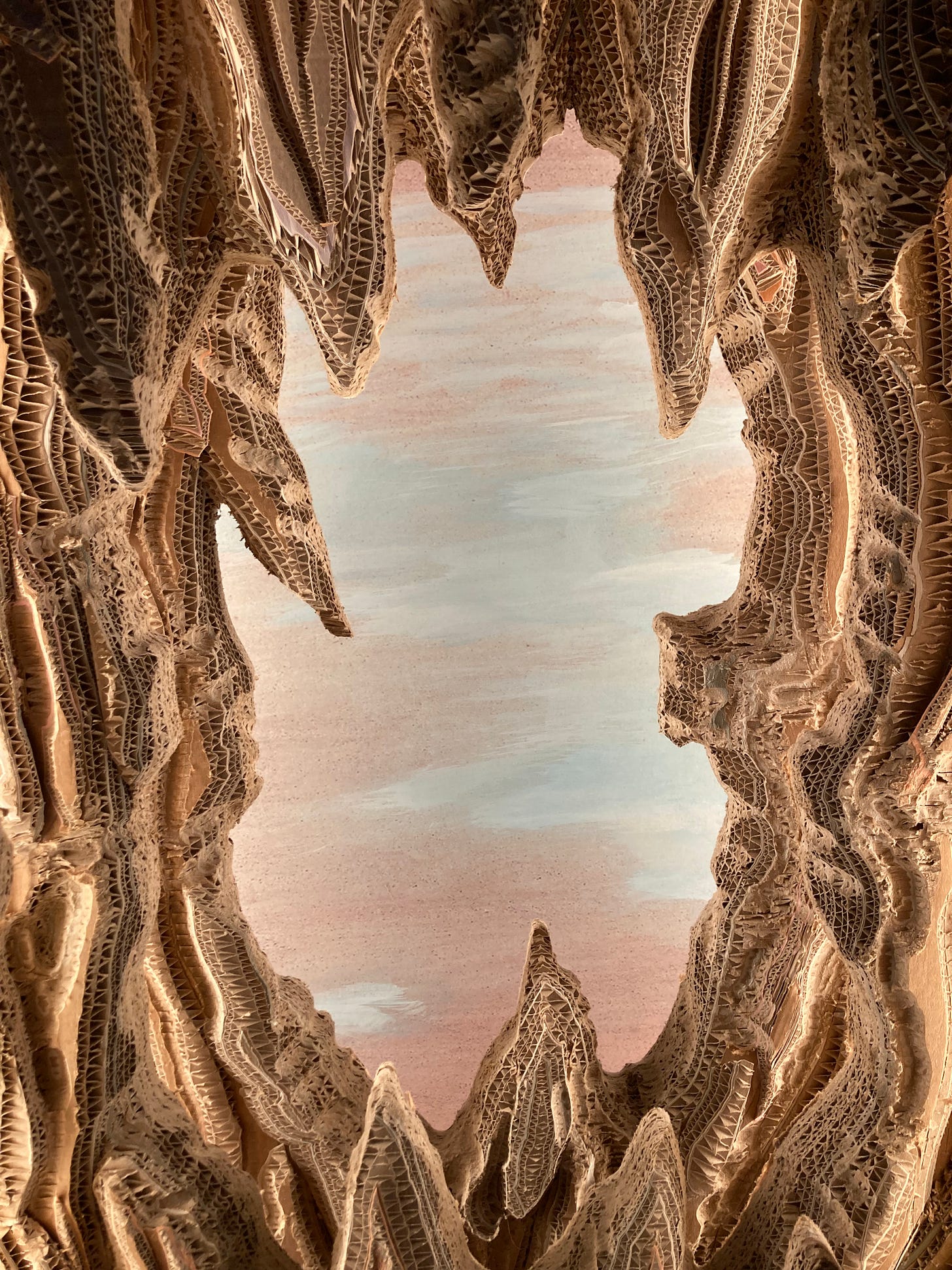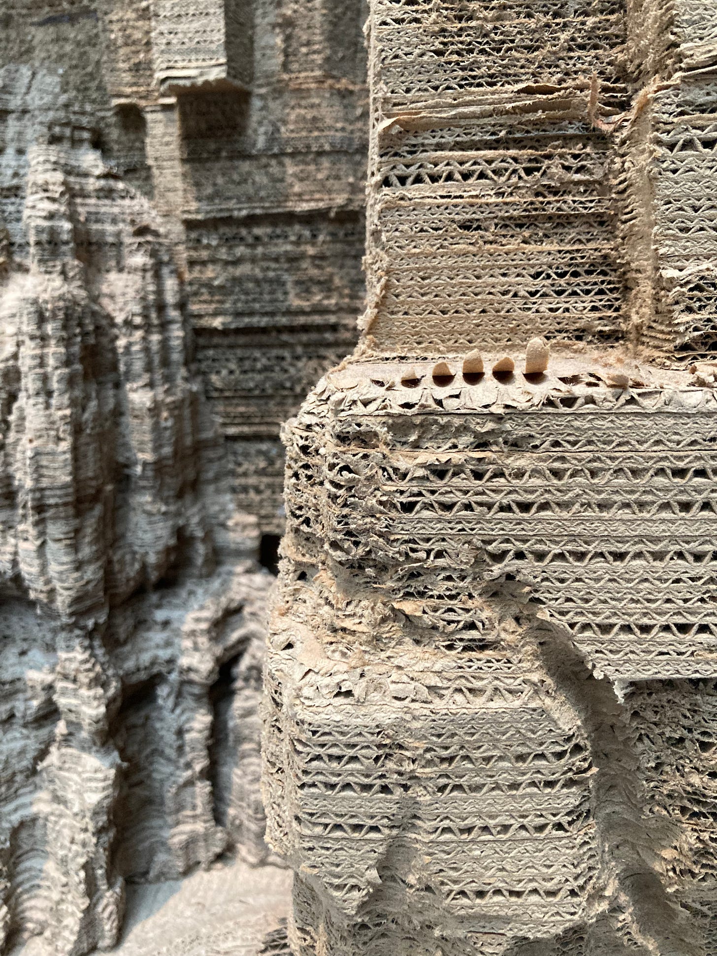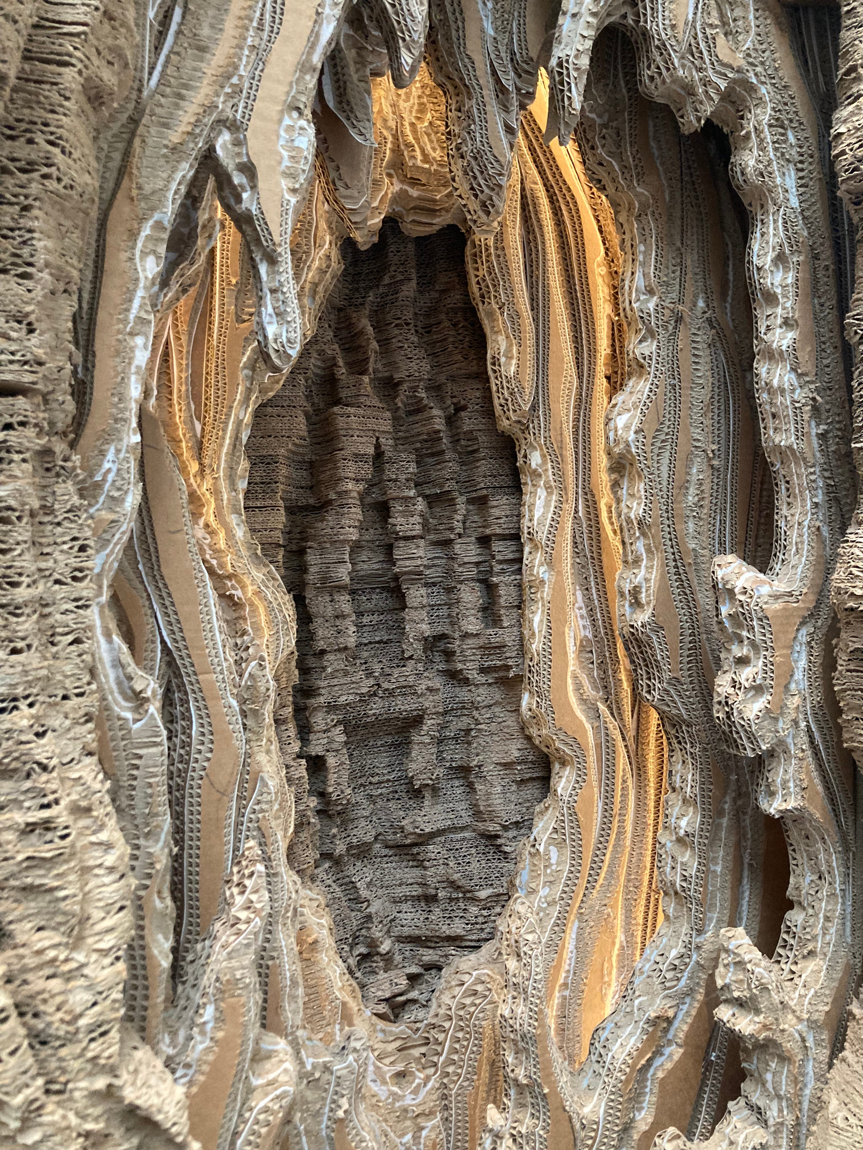 Zoom du regard sur les grottes en carton d’Eva Jospin