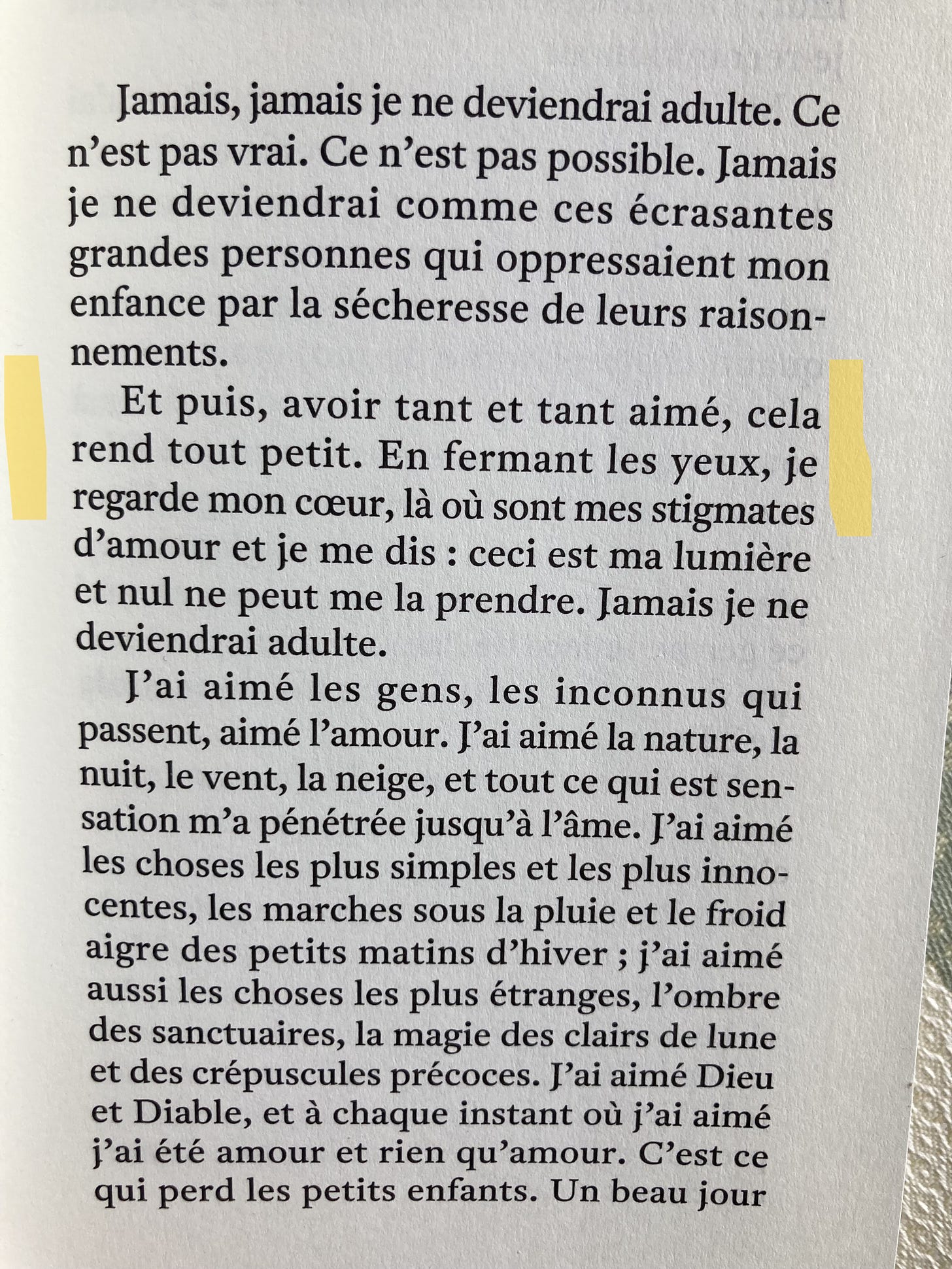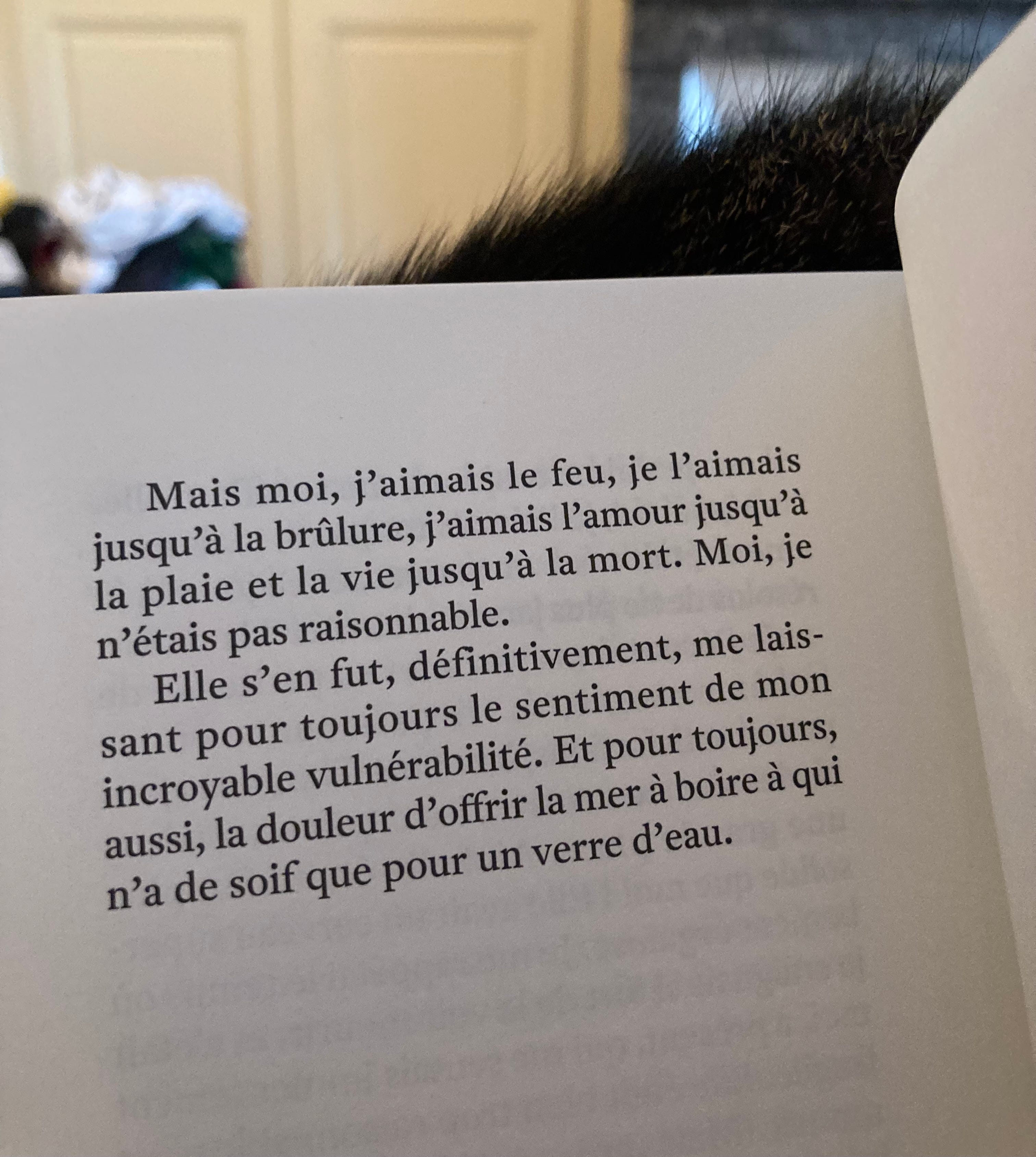 Normalement, je suis réticent face aux livres romantiques, j’ai peur du lyrisme mal dosé qui dégouline des lèvres. Là, c’est de l’eau en cascade, c’est violent et tendre, voilà tout. J’ai aimé sa liberté de ton, ses troubles livrés, son intimité avec les fantômes. Et puis c’est d’une sensibilité à fleur de peau.