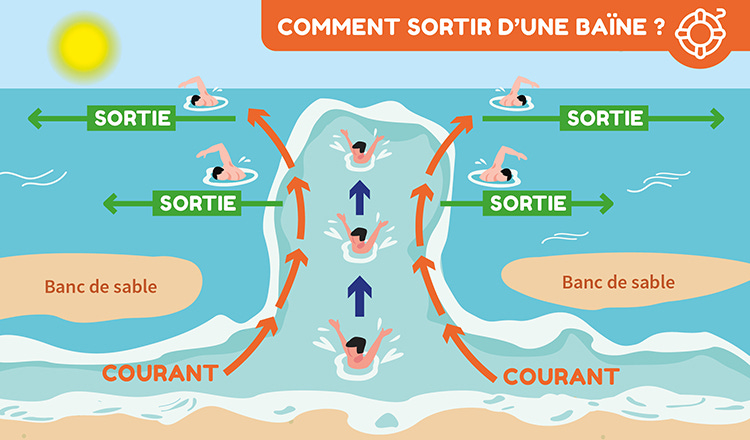 Le très sérieux site du comptoir de la mer nous l’avertit : s’il vous arrive d’être emporté-e par un courant de baïne, ne paniquez pas. N’essayez surtout pas de remonter le courant, vous risquerez l’épuisement. Laissez-vous porter.
